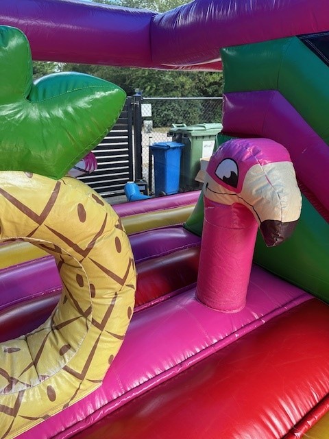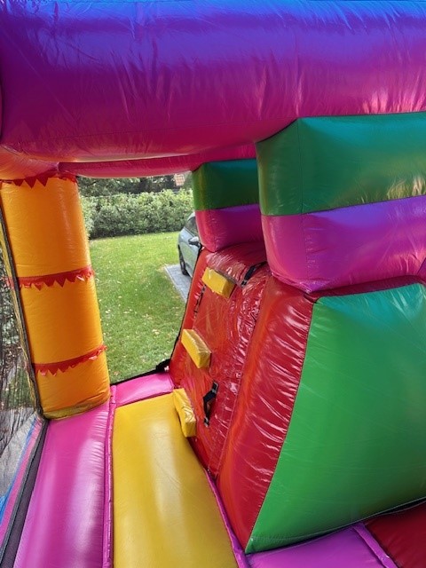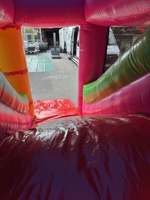 Schoenen, eten, drinken scherpe voorwerpen, slingers én confetti (shooters) zijn verboden in het springkasteel!
