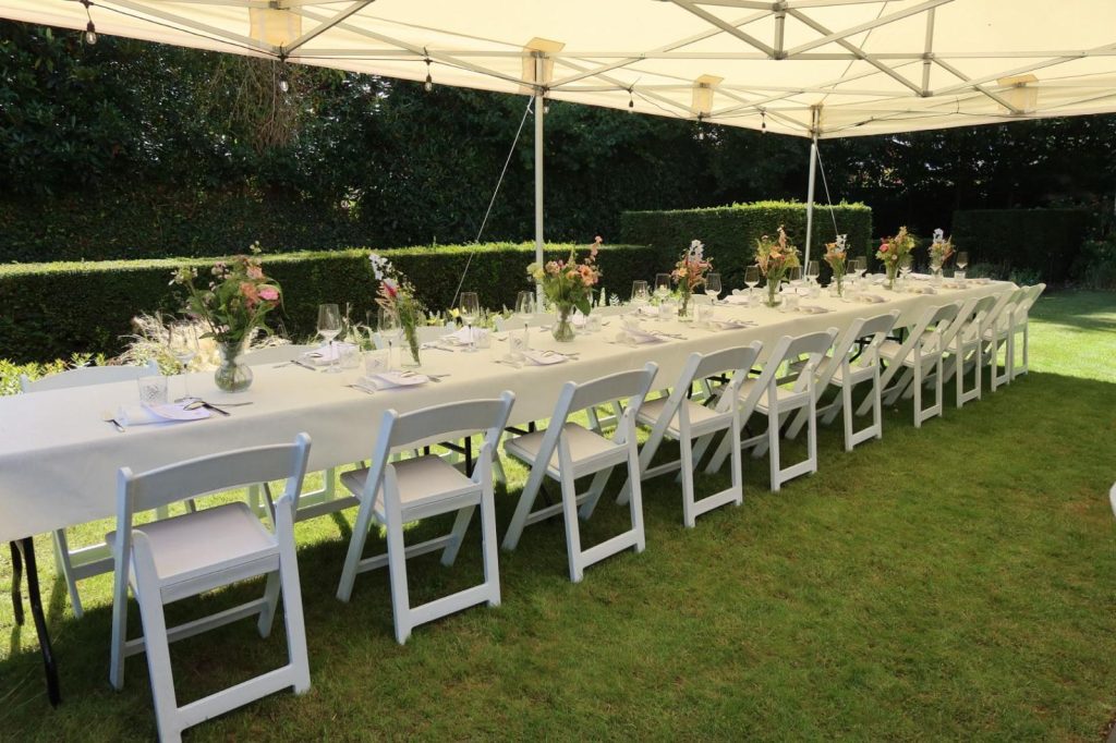 - 10 X stoelen (keuze uit standaard zwart of luxe witte stoelen)
