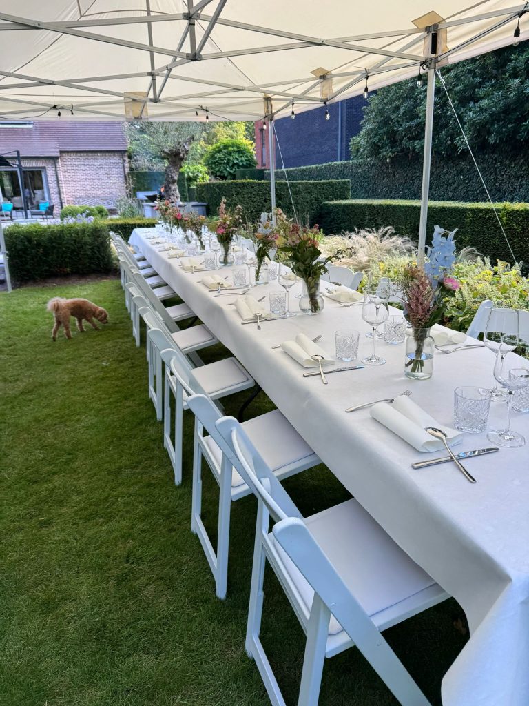 - 4 X tafels (183×76) inclusief wegwerp linnen (2meter per tafel voorzien)