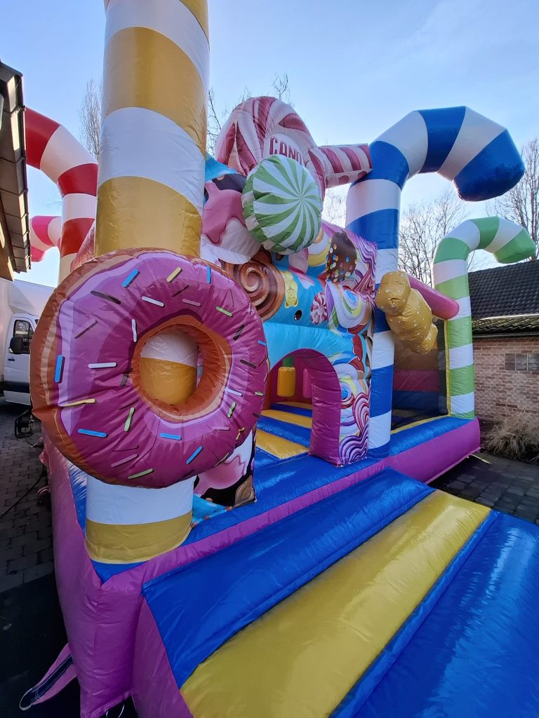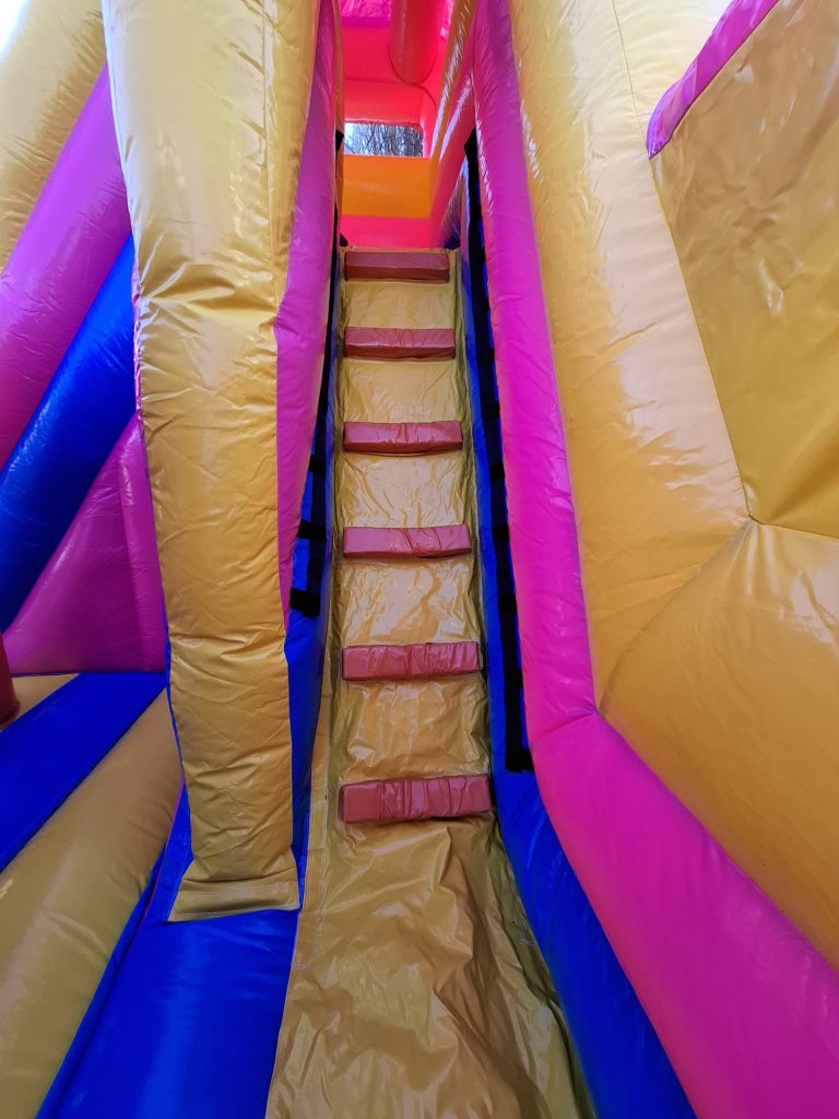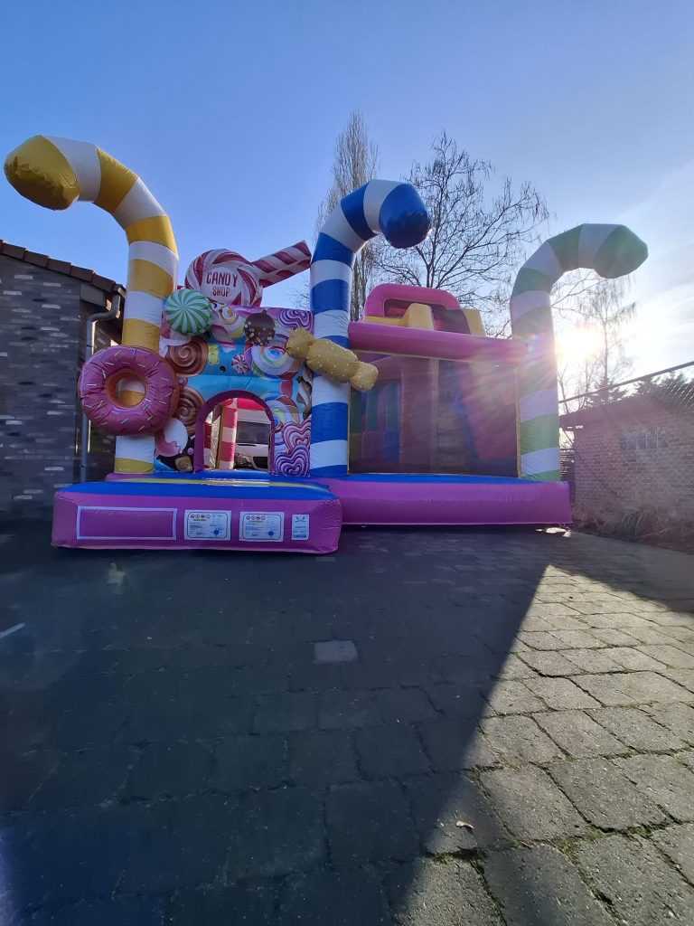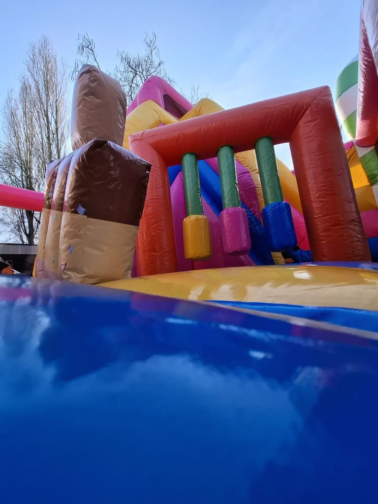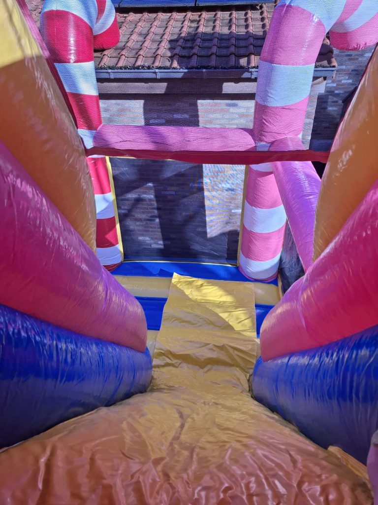Schoenen, eten, drinken scherpe voorwerpen, slingers én confetti (shooters) zijn verboden in het springkasteel!