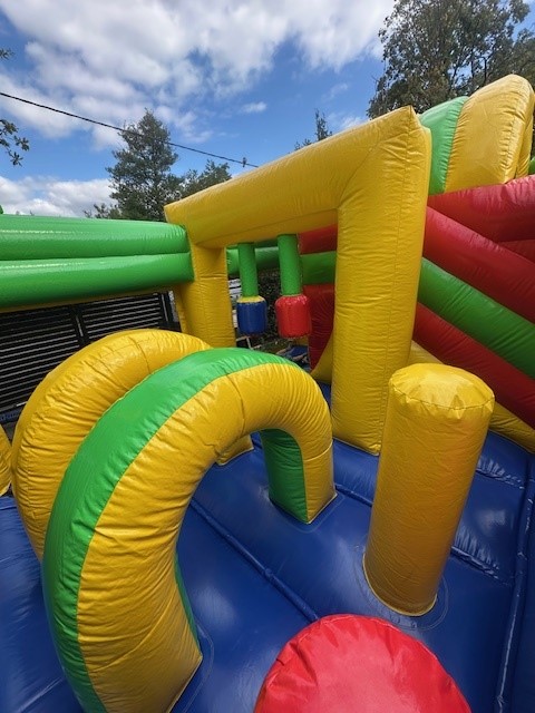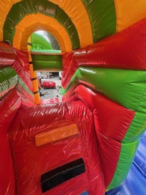Schoenen, eten, drinken scherpe voorwerpen, slingers én confetti (shooters) zijn verboden in het springkasteel!