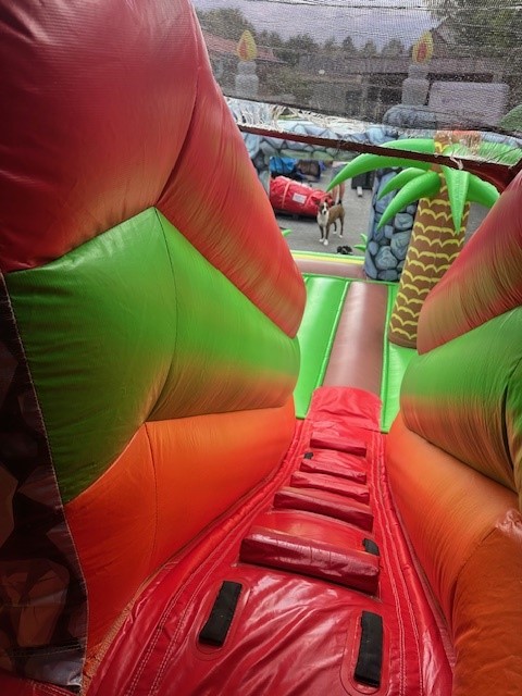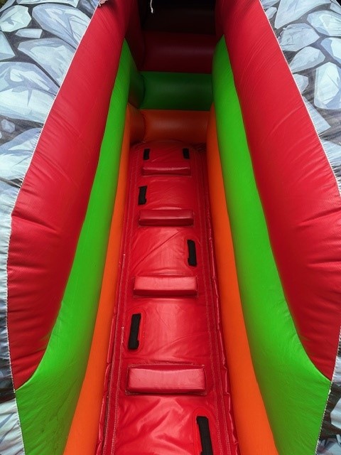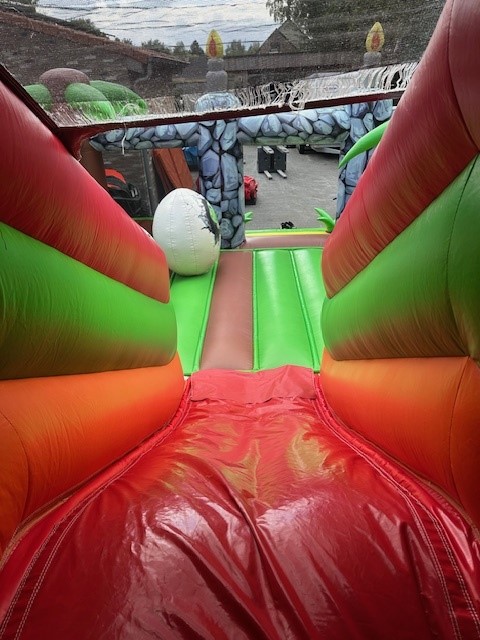 Schoenen, eten, drinken scherpe voorwerpen, slingers én confetti (shooters) zijn verboden in het springkasteel!