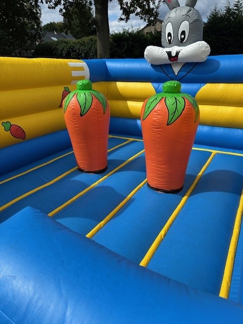 Schoenen, eten, drinken scherpe voorwerpen, slingers én confetti (shooters) zijn verboden in het springkasteel!